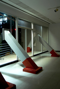 Cast Iron Hardware, Wood, Paint, Concrete.